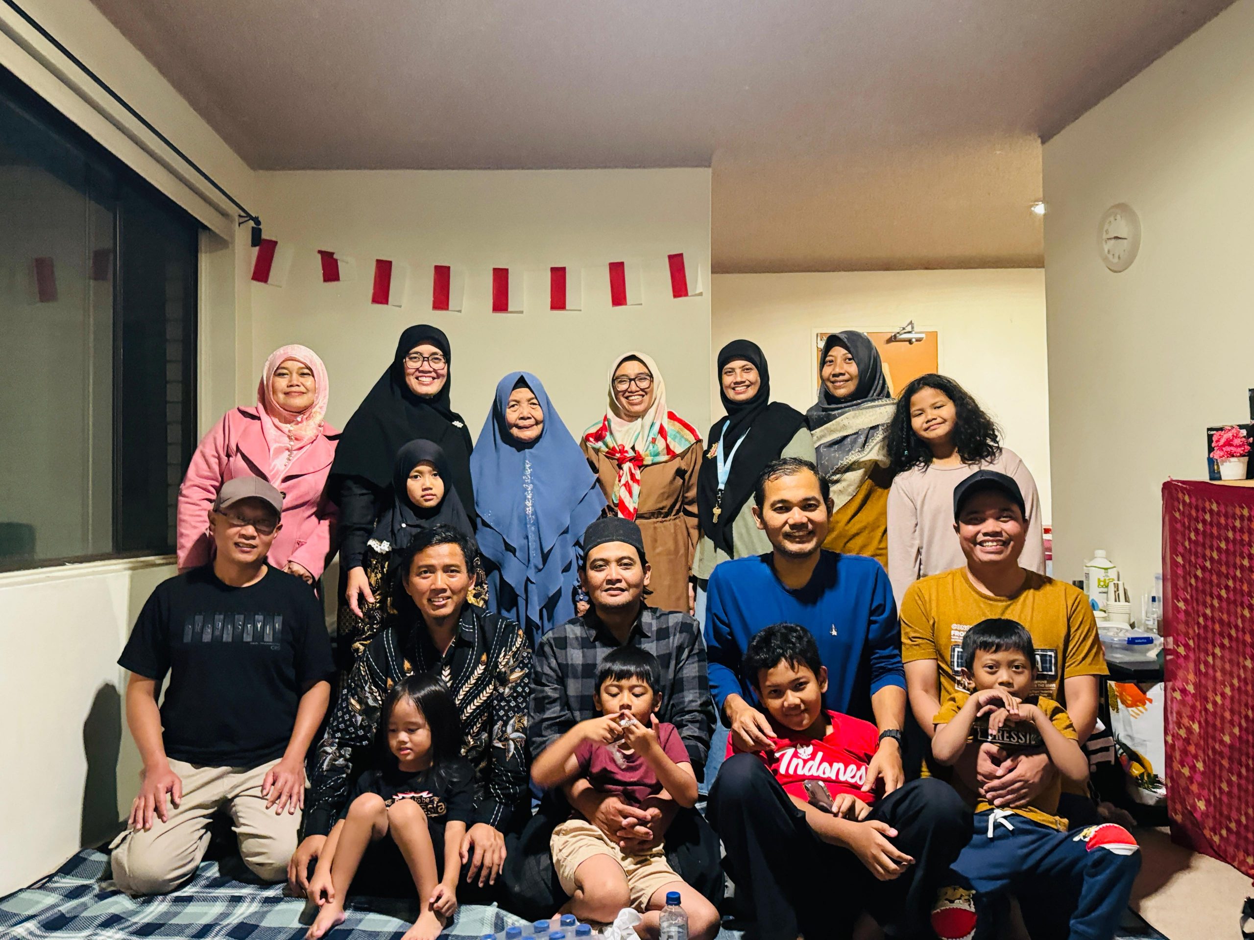 Acaranya sederhana dan informal saja. Kebersamaan dan silaturahim yang dipentingkan. Yang diundang pun beberapa keluarga mahasiswa saja (untuk dapat tertampung di ruang tamu yang terbatas tentunya). Yang hadir lima keluarga saja, termasuk tuan rumah. Hampir semuanya membawa serta anak-anak. Kebetulan yang diundang adalah keluarga mahasiswa yang lebih junior di sini, yang belum pernah sempat berkunjung ke rumah Pak Johan dan Mbak Uma. Mereka datang dari Punchbowl, Bankstown dan Lakemba. Sebagian dengan kendaraan pribadi, sebagian lagi naik kereta (kebetulan dekat sekali tempatnya dengan Stasiun Warwick Farm).